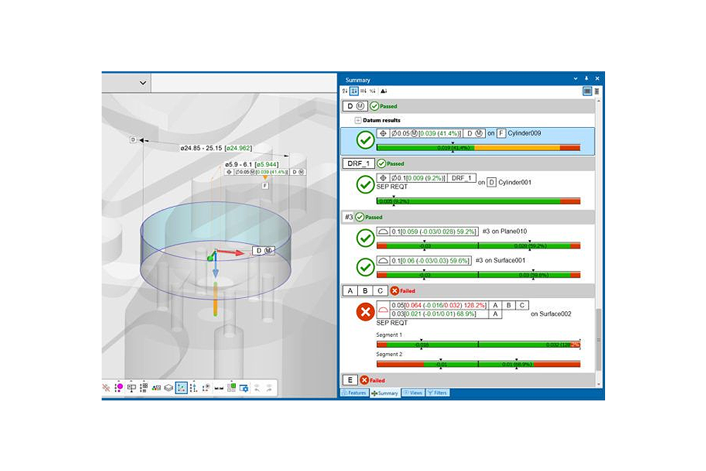 Evaluate the entire GD&T project with one-click. Using EVOLVE SmartProfile eliminates results variability caused by different evaluation techniques, software algorithms, and human interpretation.