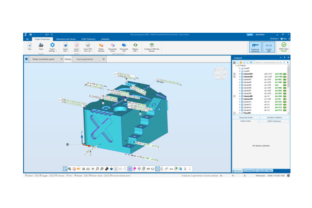 EVOLVE SmartProfile® is the world’s leading dimensional analysis software. SmartProfile provides guidance for adding or modifying part design tolerances. It combines measurement data with the CAD model of the part and automatically runs GD&T (ASME) and GPS (ISO) evaluations. Its rich set of tools allow engineers to analyze and solve complex manufacturing problems.